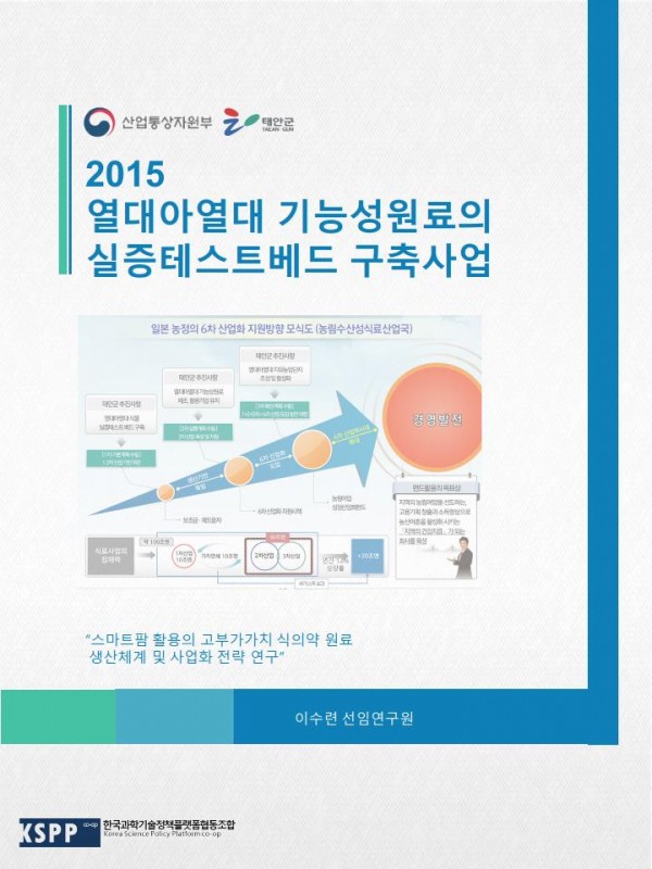 2015 열대아열대 기능성원료의 실증테스트베드 구축사업 관련링크 페이지 정보 작성일20-02-19 18:51 조회5,247회 본문 스마트팜 활용의 고부가가치 식의약 원료 생산체계 및 사업화 전략 연구 이전글 목록