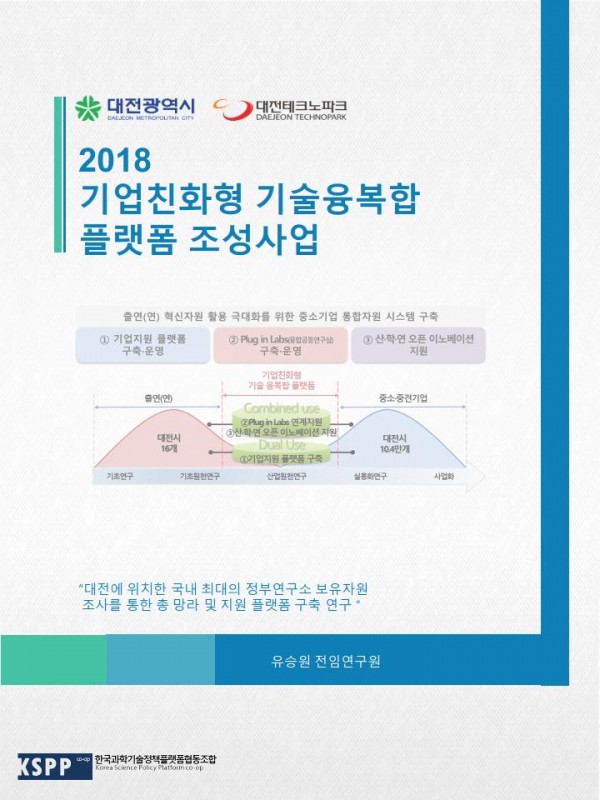 2018 기업친화형 기술융복합 플랫폼 조성사업 관련링크 페이지 정보 작성일20-02-19 18:54 조회5,921회 본문 대전에 위치한 국내 최대의 정부연구소 보유자원 조사를 통한 총 망라 및 지원 플랫폼 구축 연구 이전글 다음글 목록