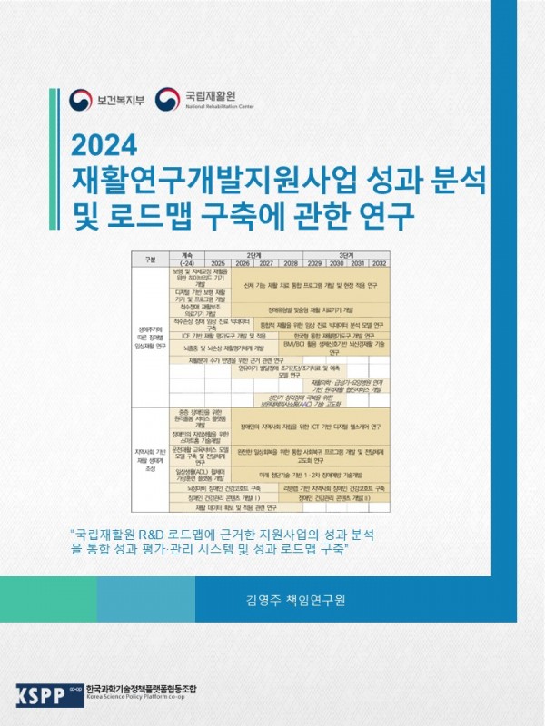 재활연구개발지원사업 성과분석 및 로드맵 구축에 관한 연구 관련링크 페이지 정보 작성일26-03-04 16:19 조회688회 본문 국립재활원 R&D 성과체계 및 성과로드맵 구축 이전글 다음글 목록